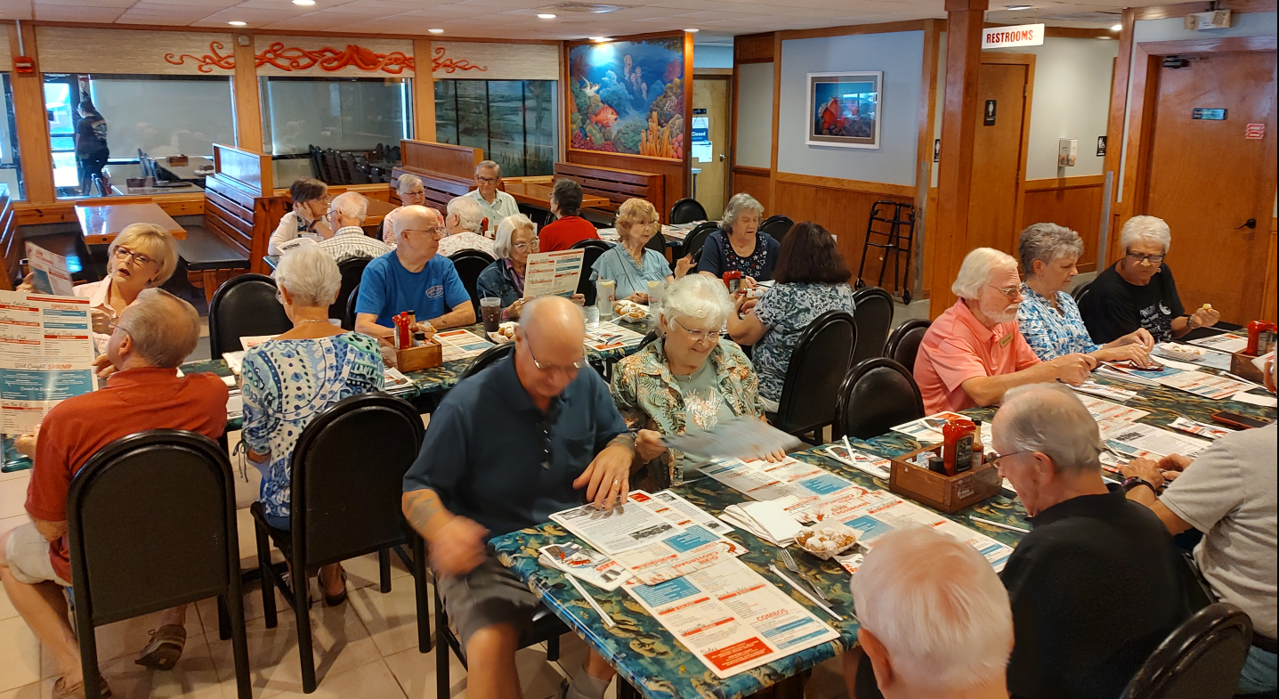 This is part of the tour group with the GOCC Singulars as they gave their lunch orders to the wait staff at Honeysuckles restaurant in Mims.