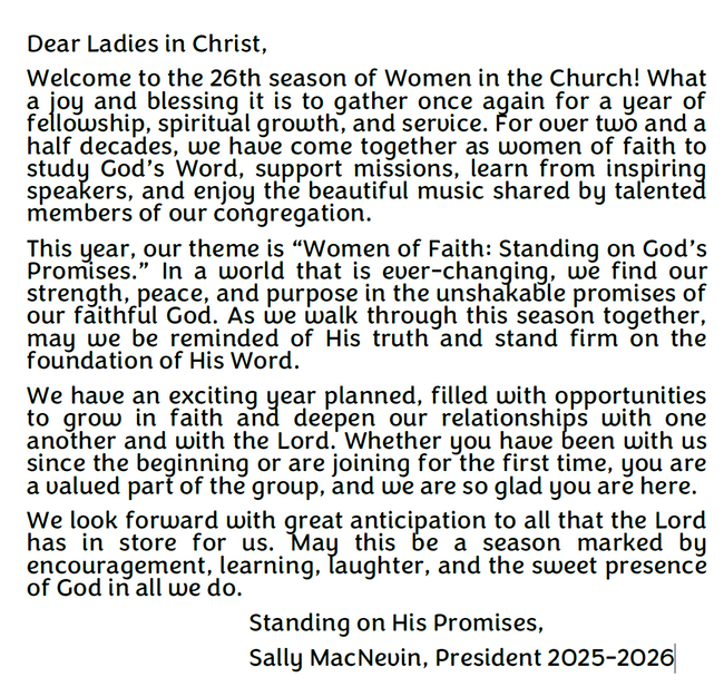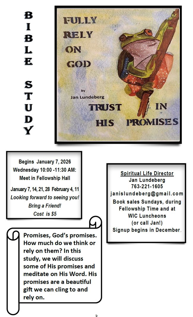 We’re meeting on the 2nd and 4th Friday at 9:00 A.M. in the Narthex.